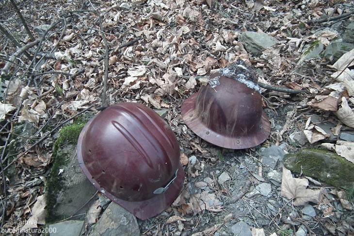 Casti din perioada Republicii Populare, din ebonita, produse la Buzau. Anii ’50 au trecut si ce era bun odinioara, azi sunt gunoaie. Insa cum au ajuns chestiile astea si cutiile din lemn prin acele locuri, in conditiile in care nu ai cum sa ajungi cu masina, ramane o necunoscuta. De ce sa le transporti cu mana pana acolo si sa le arunci mi se pare ciudat. Cand pubele de gunoi sunt peste tot… In fine :)