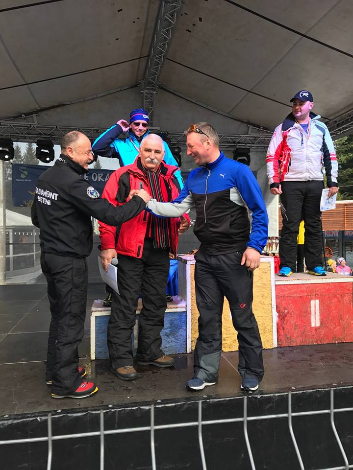 Viceprimarul, seful Salvamont si bustenari pe podium. Sursa foto: Facebook – Petrut Stefan