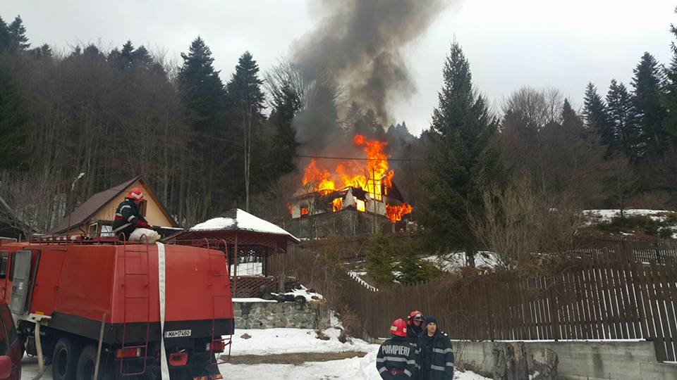Pe la Sinaia un incendiu puternic a mistuit o vila: