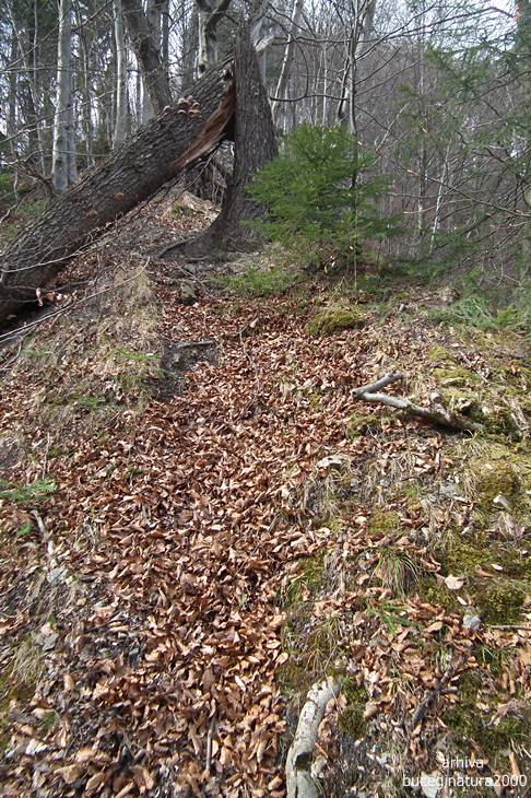 De asemenea, linga cel mai popular loc belvedere de pe DJ713 (45°19’11.02″N/25°29’0.52″E) la sud de Vf. Vinturis, am explorat drumul ce urmeaza curba de nivel de pe versantul estic. Nu am intilnit nici un semn punct rosu, cit de vechi. Acolo m-am gindit ca ar fi fost neaparata nevoie sa fie evidentiat traseul si ceva ar fi trebuit sa se mai vada.