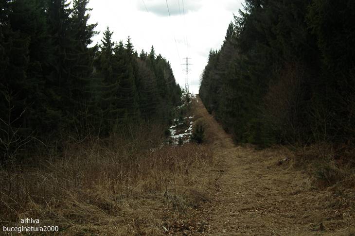 Intersectam traseul cu stalpii de inalta tensiune pentru a face niste poze spre Izvorul Rece.