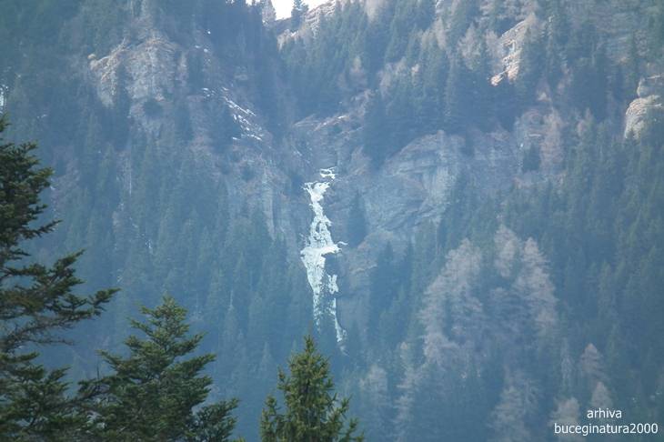 Continuam pe al treilea traseu, marcat cu triunghi albastru si iesim la podul de peste Izvorul Dorului ca sa privim spre Cascadele Vanturisului.