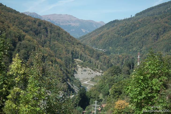 Spre defileu, jos Posada, departe Podul Oratiilor.