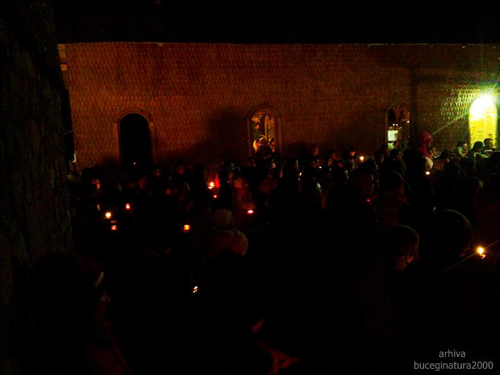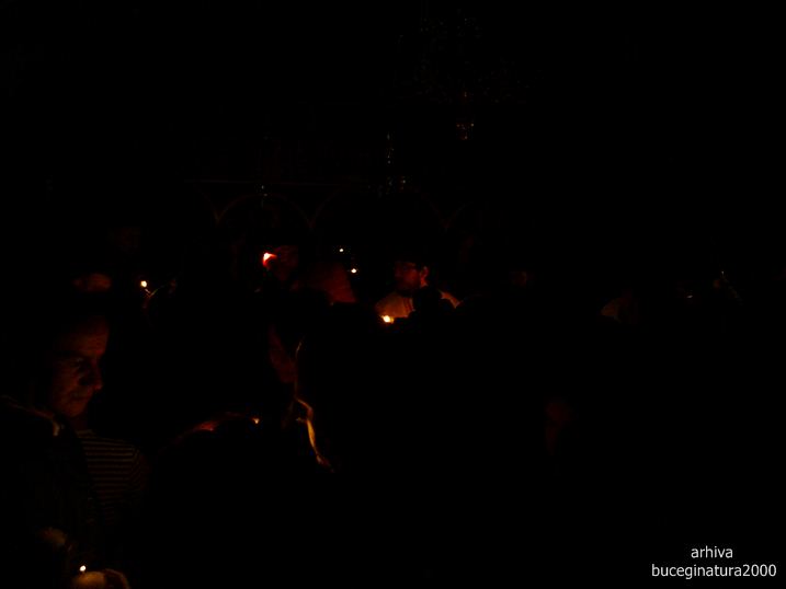 Pana la 12 noaptea, doar in altar era lumina, ca sa se poata citi. Credinciosii asteptau cuminti Lumina in intuneric. Foarte frumos… te ducea cu gandul la pustnicii ce stateau prin pesteri sau prin biserici pe timpuri. Vremuri seculare, pe cand nu era curent electric. Oricum, ce vreau sa zic este ca la aceasta biserica a fost o anumita stare de evlavie.