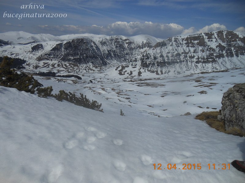 Si pe platou era zapada, vazusem pe 16.04.2012 schiori in drum spre Piatra Arsa. Totusi, zapada nu mai era cine stie ce: