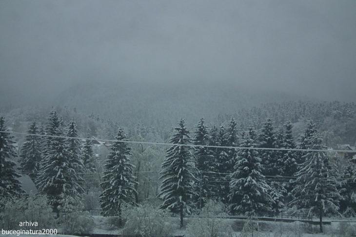 Pai, zapada a fost mereu pe Bucegi in aceasta perioada, mai ales pe vai si pe Platou. Primavara a venit mai devreme sau mai tarziu cu circa 2 saptamani. Dar, cel putin in acesti ani prezentati, niciodata nu a fost zapada la poalele Bucegilor. Acum, totul este alb imaculat, fiecare creanga, casa, gard, are mantie alba: