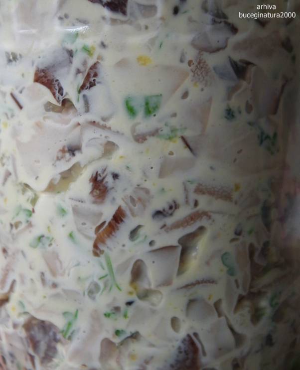 Cam asta a iesit din pastravi, ca asa se numesc acele ciuperci. O minunatie de salata… maioneza, ciuperci, verdeata. Autorul este buretarul de mai sus :) I-am mai zis, ca trebuia sa se faca bucatar, cei care-l cunosc stiu ce iese din mana lui :) dar nu e tarziu nici acum.