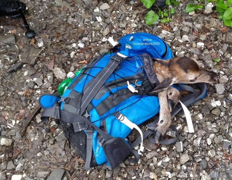 Oamenii acestia au observat un „pui de caprioara” blocat printre pietre. L-au salvat, ca omul de munte e saritor, adesea. L-au bagat apoi intr-un rucsac. Parca nu se mai oprea din tremurat. De frig clar, nu de frica. Intotdeauna e ce ne place sa credem. Salvarea lui Bambi din Valea Rea a insemnat bagatul in rucsac: