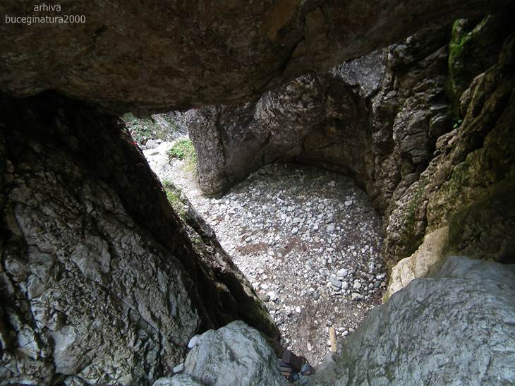 Intrarea/originile tunelului… cum era denumit de primii montaniarzi, ne-a dus in preajma unor tineri care faceau alpinism. Adica se iese undeva la un gol, vine un perete, apoi in rapel. Surpriza mea a fost sa vad si fete pe acolo. Nu ca nu ar avea voie… dar judecand dupa aspectul intrarii, eu am crezut ca doar barbatii sunt atrasi in interior. Chiar nu mi-am inchipuit ca si aici, pe munte, a ajuns discutia despre componenta unei familii. Nici muntele, nu mai este ce era odata :) :)