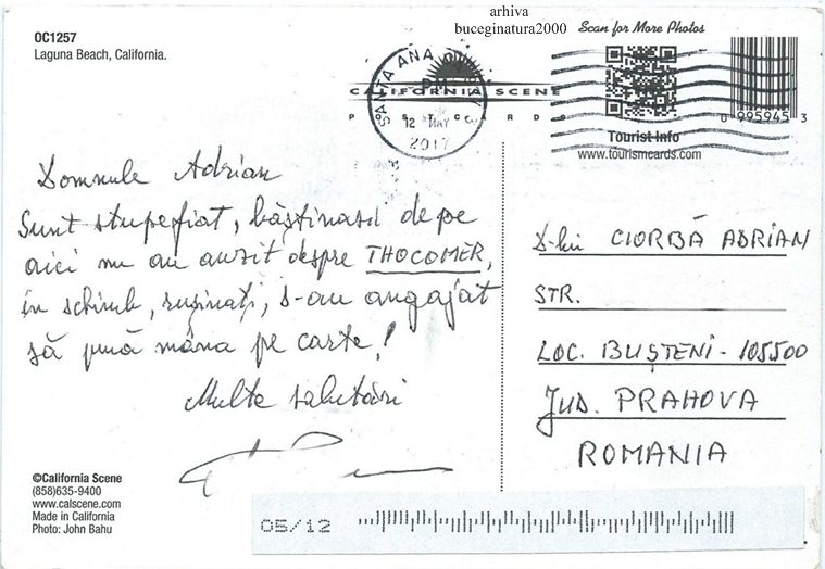 Un prieten de peste ocean, cu care mai corespondez, intrucat am si pasiunea cartilor postale dar si realizarea lor, tot imi face periodic cate o surpriza. El are o legatura cu comunitatile romanesti de pe acolo si cartile mele circula de la unul la altul. Initial, nu auzise nimeni de ele, ce ar fi prin acestea.