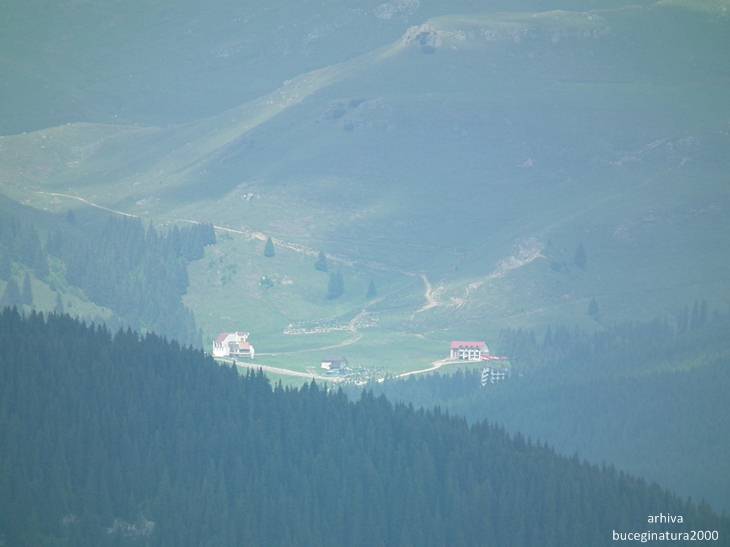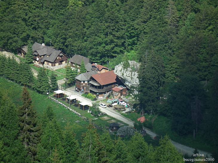 Hotelul Pestera si pensiunea Cocora in dreapta, statia de telecabina Pestera in stanga.