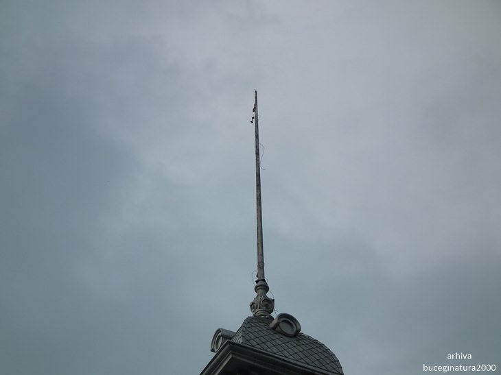 Pai, in varful Casinoului a fost odinioara un steag, ca si la Castelul Peles. Cand le-am propus celor de la Peles sa puna steagul pe castel au zis: „fugi dom’ne ca mai cade cineva de pe acolo si… ca, doar cand era familia regala la Peles se arbora drapelul.” :) Dupa o vreme au pus steagul si s-au felicitat pentru idee :) Na, si istoria asta se simte dupa un timp ;)