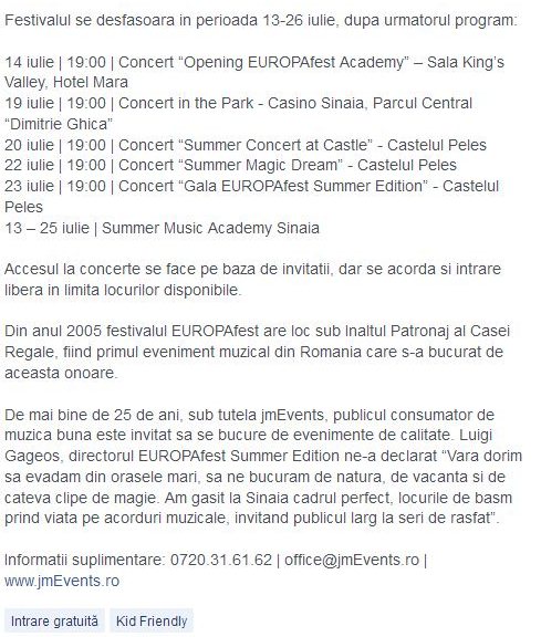 In aceasta perioada, la Sinaia se desfasoara festivalul Europafest. Ce inseamna, vedeti mai jos: