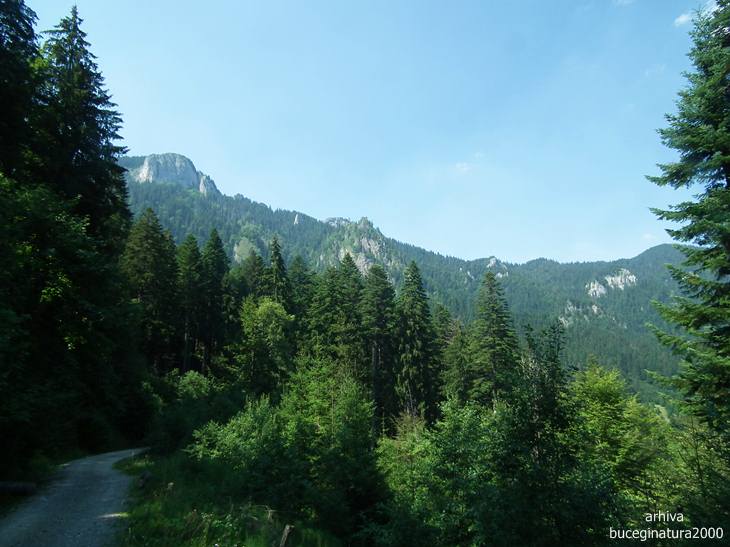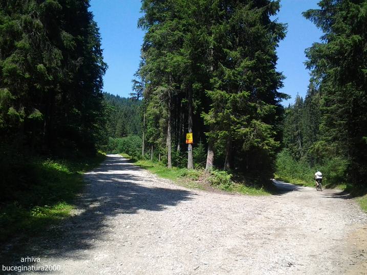 O luam prin Busteni-Azuga si intram pe Valea Azugii. Drumul forestier pana in saua care desparte judetele Prahova si Brasov, are cam 16 km. Pana la cabana Trifoiul, adica pe vreo 10 km de la intrarea in padure, au pus „talharii” :) pietris pe drum. Si cam tot e numai piatra mare, asa ca e o „placere” sa mergi cu masina sau cu bicicleta. Gropile macar le ocoleai :)