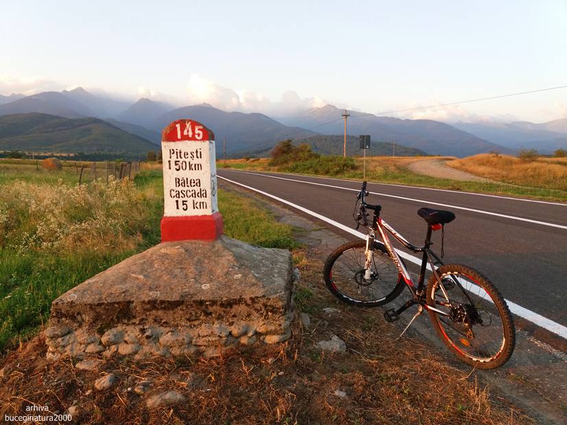 La borna ce arata 18 km pana la Curtea de Arges, ne hotaram sa-i dam bice pana la Curtea de Arges, sa facem integral Transfagarasanul. Am ajuns pe intuneric si racoarea de seara ne-a prins bine.