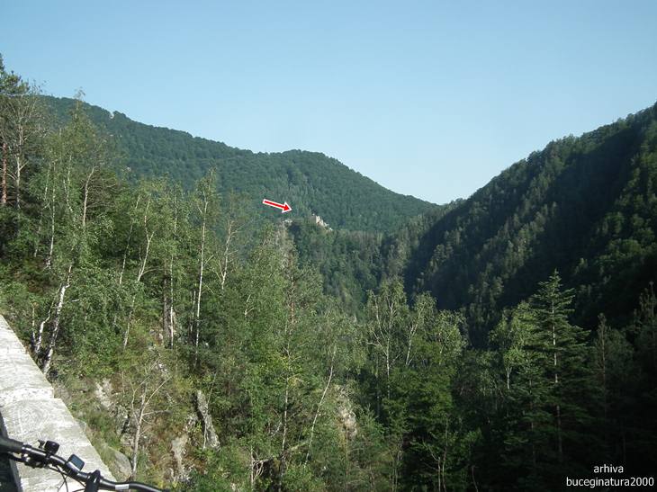 Cetatea Poenari, vazuta chiar de pe podul de mai sus, imaginea anterioara.