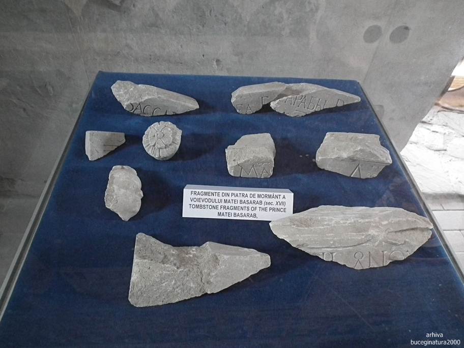 Resturi din piatra de mormant a lui Matei Basarab. Adesea, locurile de veci ale domnitorilor au fost profanate. Matei Basarab isi doarme insa somnul de veci la Manastirea Arnota, ctitoria sa. Initial, a fost ingropat in aceasta biserica din Targoviste, desi el ceruse sa fie inmormantat la Arnota. Ulterior, Radu Mihnea al III-lea i-a mutat osemintele la Arnota.
