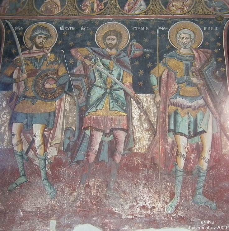 Am vazut asadar cum arata sfintii luptatori. Nu cumva „cavalerul fara cap” din Biserica „Sf. Nicolae” Domnesc din Curtea de Arges, este tot un astfel de sfant? :) Cred ca aceasta este cea mai logica varianta, depasind evident speculatiile ca este un Basarab pictat, un templier, ca dusmanii intentionat i-au sters capul ca sa nu ne stim istoria.