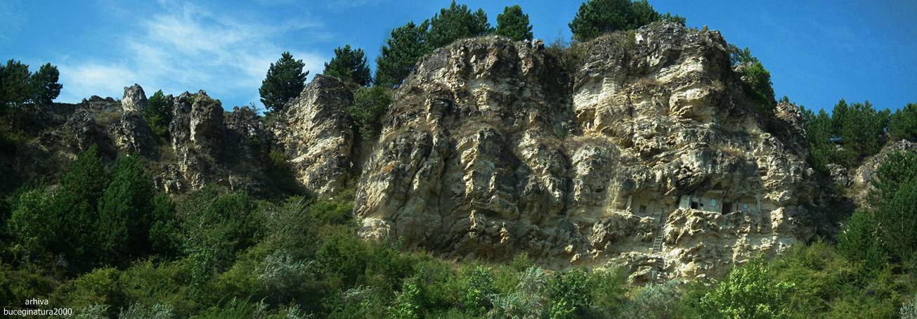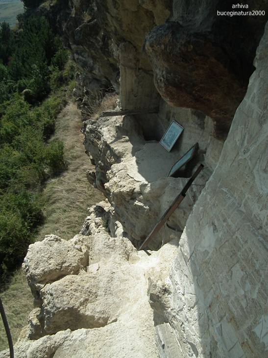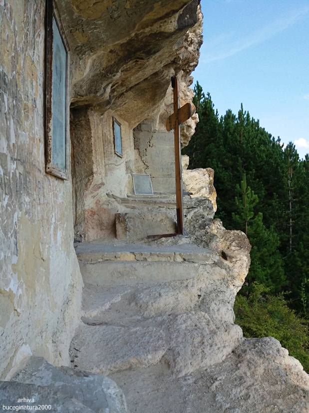 Spre Chilia lui Ambrosie. Ambrosie a fost un pustnic local de acum circa 50-70 de ani, are o intreaga poveste pe tot felul de site-uri. Important este ca a locuit intr-o grota sapata de alti pustnici. El a largit-o si compartimentat-o.