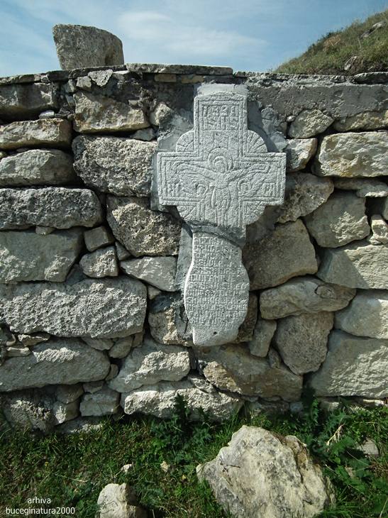 In apropiere de zidul ce imprejmuieste biserica se afla acest panou. Sunt 3 locuri de veci sapate in stanca, unul semnalizat si in apropiere si celelalte putin mai sus.