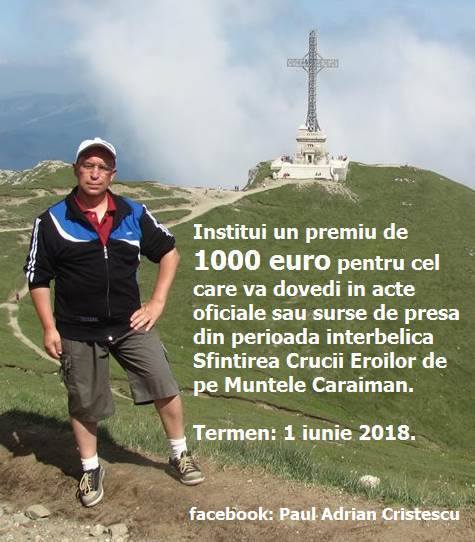Si inchei cu premiul instituit de d-l Paul Adrian Cristescu, autorul unei carti despre Crucea de pe Caraiman: