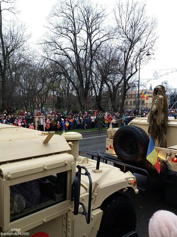 Organizarea era cum vazusem la tv, cum auzisem, adica foarte proasta, pentru ca nimeni niciodata nu s-a gandit la cetatenii care participa. Mii de oameni care au venit la parada faceau drumul de la Arc la Victoriei, pe jos evident, fara sa vada nimic :) Minim cinci randuri de oameni le stateau in fata, spre sosea, deci nu aveau ce sa vada. Altii erau prin copaci, pe garduri. Intr-un oras civilizat din Transilvania nu ai sa vezi asa ceva. O harababura ca in tarile africane! Singurul aspect deosebit a fost calitatea oamenilor care participau… oameni cu copii, educati, politicosi, cu o anumita eticheta. Marlania/incultura autoritatilor conduc la urcarea pe garduri si prin copaci. Cat timp o zarzavagioaica k Firea conduce Bucurestiul nu poate iesi ceva civilizat. Oameni de acest tip sunt mai preocupati sa se certe decat sa faca pentru cetateni.
