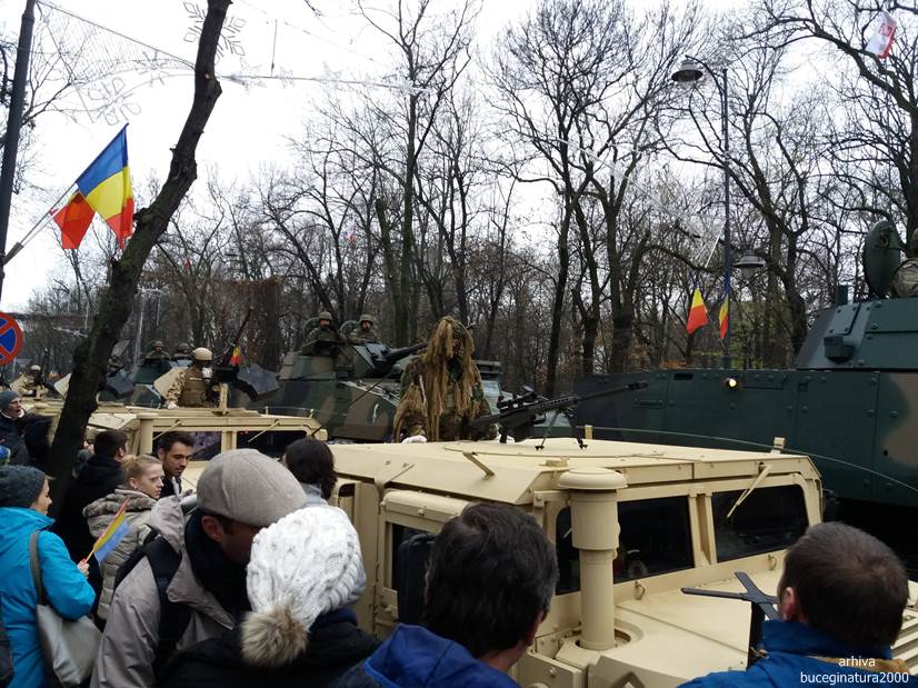 Macar au vazut copiii, ca am reusit sa gasim un culoar, soldati, tehnica militara, avioane… Am cumparat de la niste baieti orientati niste stegulete si am privit si noi. Acum, vorba cuiva, parca anul acesta au defilat mai multi jandarmi si mai multi politisti. Omul spunea: „Sa fi fost oare pentru intimidarea demonstrantilor de la Guvern? Ca nu prea vad legatura dinte politie / jandarmerie si lupta de independenta si formarea statului roman.” :)))