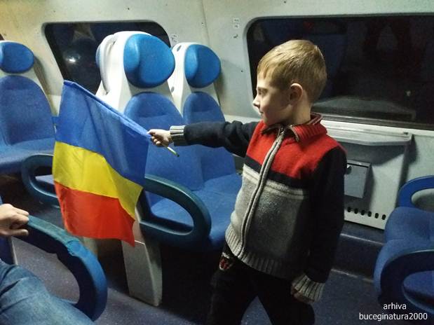 Trenul de 16:37 l-au garat cu 20 de minute mai devreme si nici la plecare nu se umpluse de oameni. La cata lume vazusem ca a coborat dimineata, ne gandeam ca va fi plin. Chiar si asa, Rares tot nu a avut stare pana nu a umblat el prin vagon sa zica „Romania sa traiasca”, „a implinit 99 de ani”, „merg cu steagul ca asa merg patriotii”. Am ras cu el si noi si alti calatori pana la Comarnic cand gata, micul jder voia acasa :) mai ales ca nu le mai ieseau la socoteala statiile CFR. Cand venisem cu trenul particular, baietii notasera fiecare oprire. Insa la intoarcere am venit cu trenul CFR si acesta opreste in toate statiile, pe cand cel particular nu opreste chiar in toate. Mai era si noapte…