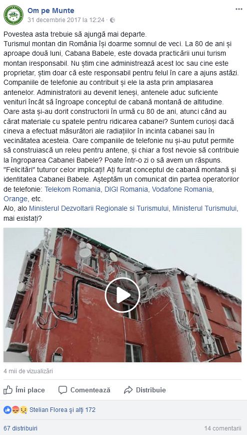 In legatura cu muntele, circula pe facebook, o postare despre cabana Babele: