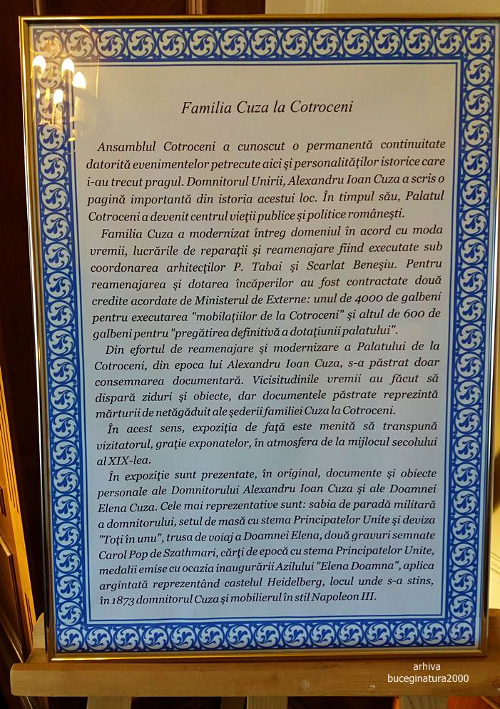Sabia se gaseste in salonul numit Alexandru Ioan Cuza, alaturi de alte lucruri care i-au apartinut acestuia. Pentru ca si Cuza a locuit la Cotroceni, evident nu in ce vedem astazi ca si cladiri.