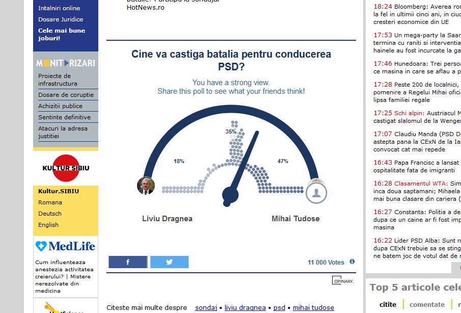 Vad un sondaj pe Hotnews si vazand ca daca apas sunt al 11.000-lea zic gata, pe el, pe sondaj.