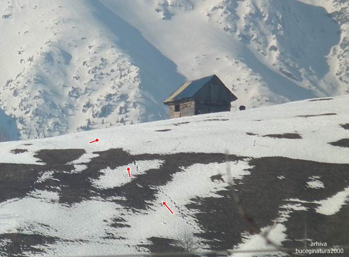 Mai ales ca apropiind cu aparatul am vazut un sir de urme prin zapada. Nu erau de om si semana cu pasii facuti de un urs. Nu vreau sa exagerez, imi dau doar cu parerea, nici acum nu stiu ce era: caine sau urs. Inclin sa cred ca urs.