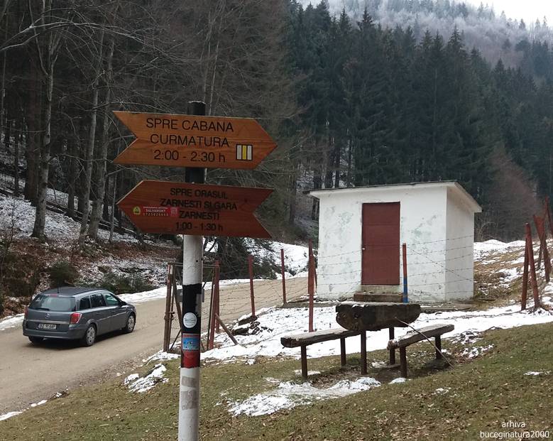 Iesim din padure si urmam forestierul… nu prea era nimeni :) Mai sus ne-am dat seama de ce, oamenii de munte plecasera de dimineata in drumetii. Mai multe masini erau parcate la fantana lui Botorog, de unde poti alege drumul spre Prapastiile Zarnestilor, spre Magura, urca la cabana Curmatura sau merge spre Bran peste dealul Magura.