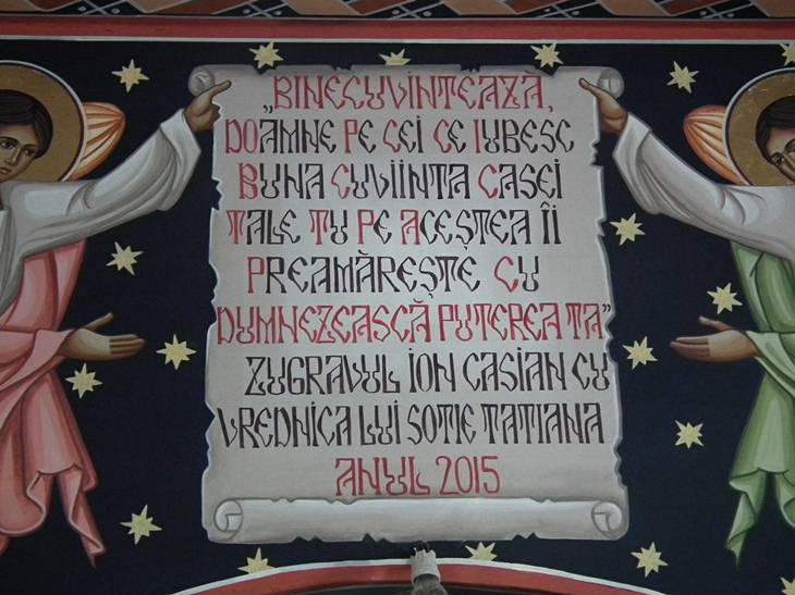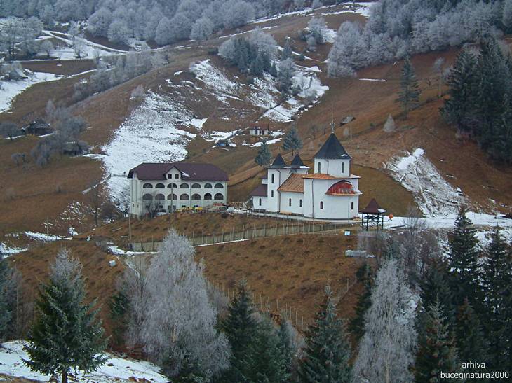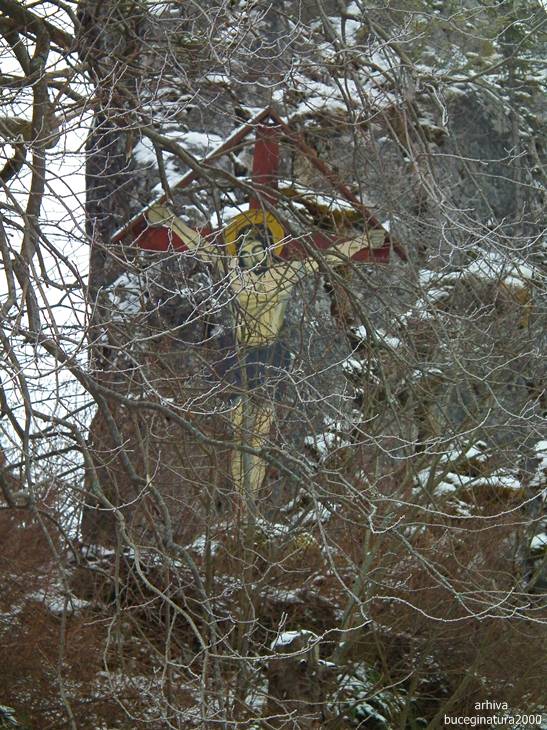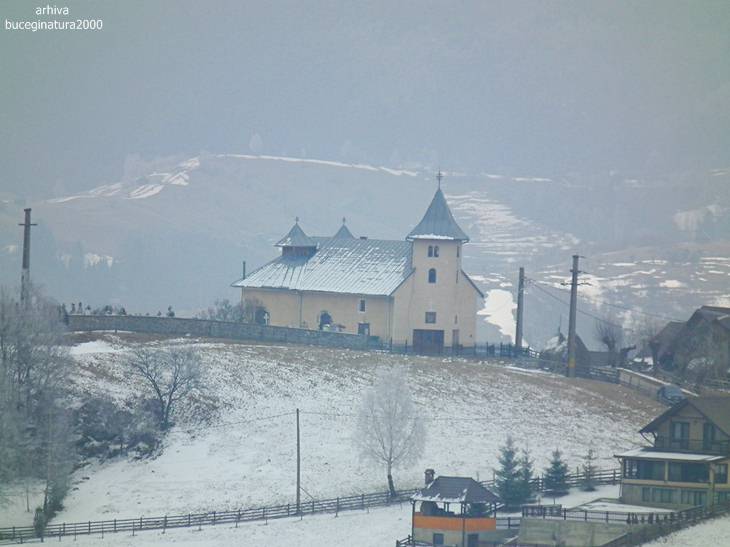 Pe drumul cu gheata, destul de ingust, ajungem si la acest locas religios. Aici ne astepta o poveste frumoasa. O doamna avea grija pe acolo, ne-a spus ca terenul a fost al dumneaei si l-a donat pentru ridicarea bisericii. Pe teren se afla si casa ei batraneasca pe care a demolat-o, numai ca sa se ridice biserica. Evident, a pus la dispozitie gratuit acel teren…