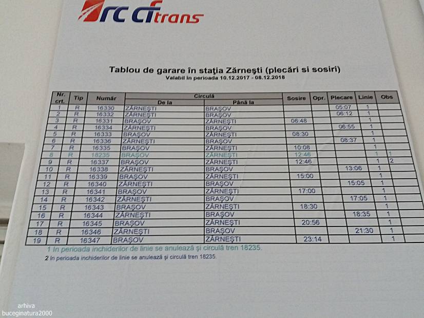 In Brasov, coboram si luam bilete la trenul spre Zarnesti, 4,4 lei/biletul. Trenul pleaca aproape de ora 9:30 si peste o jumatate de ora a ajuns in gara Zarnesti. Deci, de la ora 10 a inceput traseul propriu-zis. Trecem prin centrul orasului si o luam pe traseul de Maraton Piatra Craiului, spre Fantana lui Botorog.