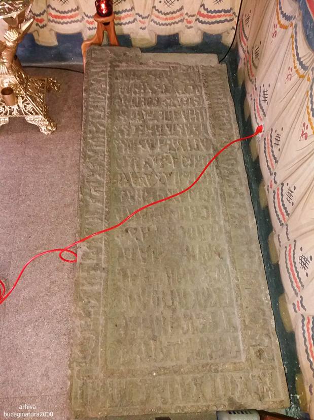 Si nu e ultima eroare, mai trebuie spusa una :) In biserica este o placa de mormant. In alte biserici, de regula traducerea inscriptiei este afisata in apropiere. Aici nu este, deci am sa-i rog sa puna una.