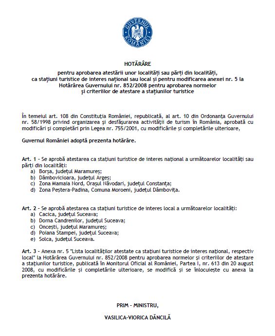 Guvernul a completat lista statiunilor turistice si gasim pe aceasta si: