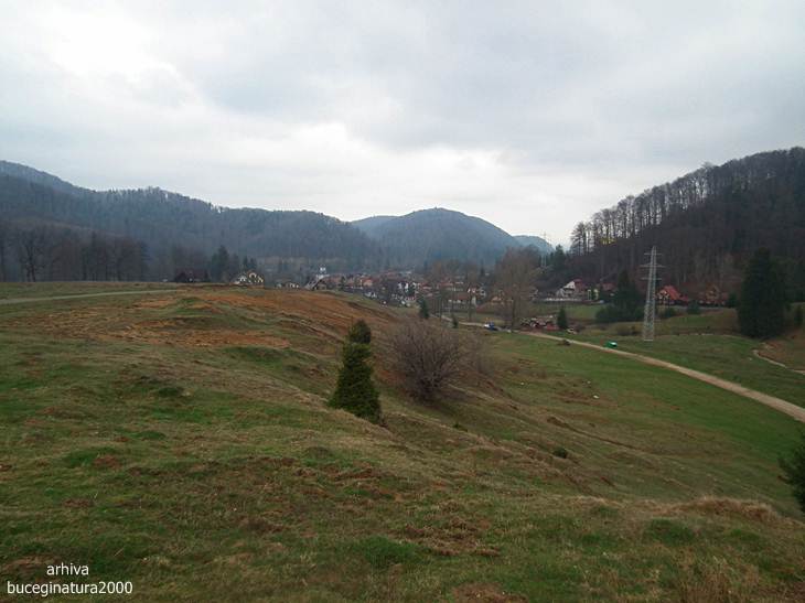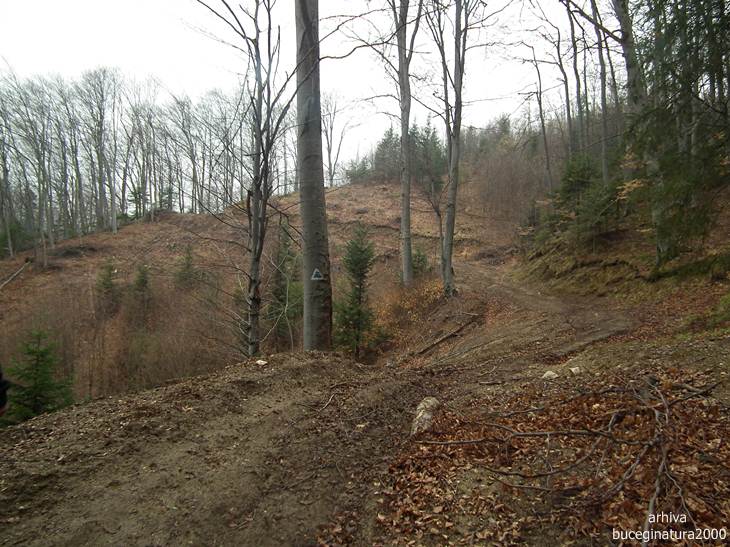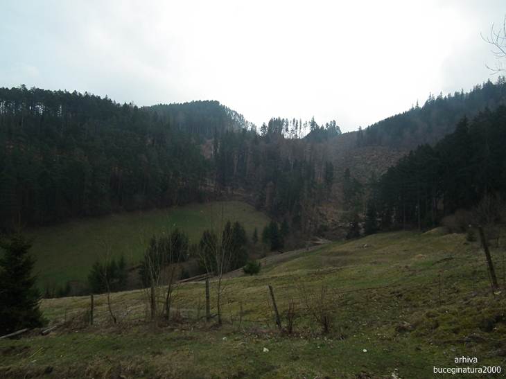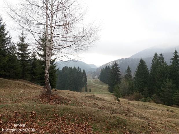Si fiind in zig-zag cu totul, parca nu mai aveam niciunul chef sa mergem la Canion. Drumul forestier se vedea undeva sub noi, la vreo 150 m. Nu am mai mers :) Am luat-o prin poiana spre bariera de la Dambu Morii, de unde incep principalele trasee spre masivul Piatra Mare.