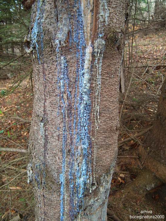 Cum noi nu eram in poteca unui traseu turistic ci mult mai jos am nimerit in el, culoarea rasinii era naturala.