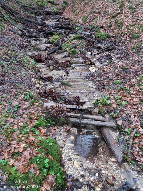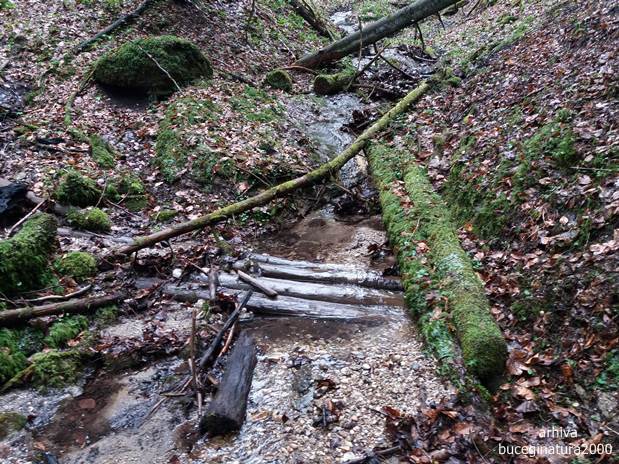 Intai, deoarece mi se paruse chiar aiurea rau sa mai urmez traseul clasic gara Timisul de Jos-Dambul Morii pe langa sosea, zic sa facem dreapta pe un pod, sa intram pe firul unui paraias si, dupa ideea mea, sa iesim in 20 minute in traseul spre 7 Scari, chiar in padure. Am fi scurtat vreo 2 km cel putin de ocolire.