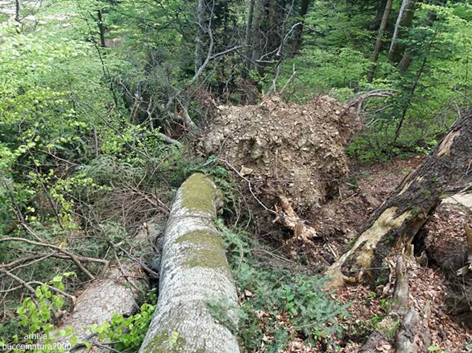 Cobor, cobor si ajung la drumul forestier ce ajunge la captarile Vaii Jepilor. Iata ce sta pe acolo, prinse de brazi cu cuie zdravene: