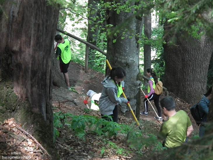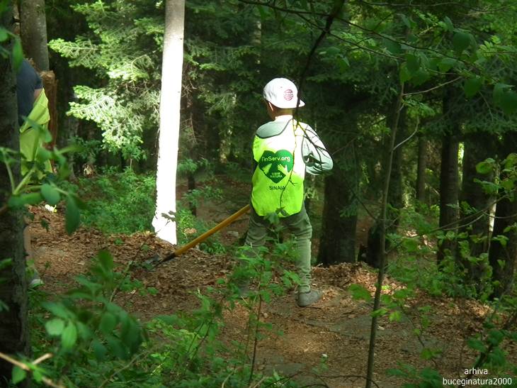Grupul sau asociatia sinaiana TinServ incepuse iar treaba la poteca regala. De cativa ani, vin cu mic cu mare, cu greble, lopeti si curata de frunze si de pamant poteca pavata care urca la fosta Stana regala.