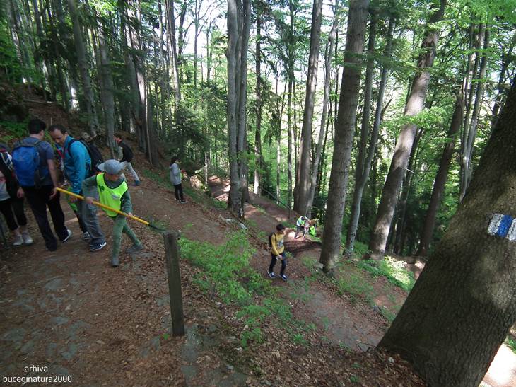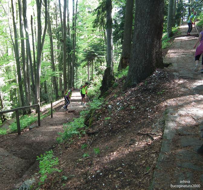 Grupul sau asociatia sinaiana TinServ incepuse iar treaba la poteca regala. De cativa ani, vin cu mic cu mare, cu greble, lopeti si curata de frunze si de pamant poteca pavata care urca la fosta Stana regala.
