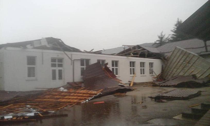 Nu stie nimeni ce s-a intamplat cu exactitate azi dar… a zburat o parte din acoperisul scolii din Poiana Tapului.