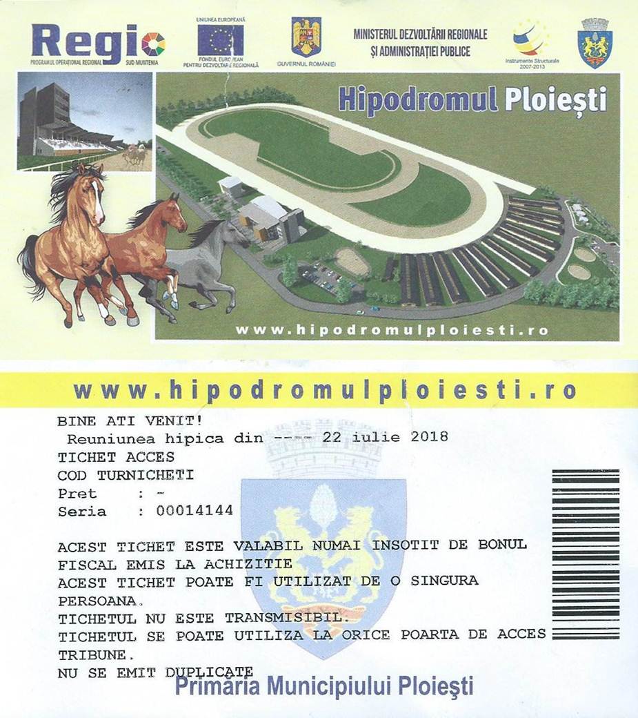 Ajungem si la hipodrom. O data cu biletul/biletele, se inmana si un program pe 4 pagini. Biletul a fost 5 lei. Copiii sub 14 ani nu platesc.