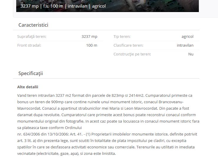 Conacul a fost demolat, ca mai pastra niste ziduri, dupa Revolutie. Asa se scrie. Treaba este ca proprietarul, un descendent al familiei Mavrocordat, la un moment dat il vindea pe net la pachet cu un teren. Adica iei terenul la un pret si bonus erau ruinele conacului.