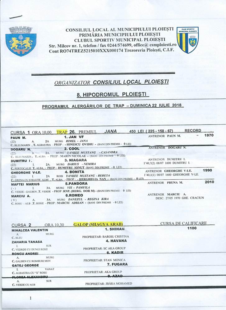 Duminica, 22.07.2018, curse de cai… si zic ca le-ar place copiilor. Gandesc ideea cateva zile, sa vedem daca mergem si ce mai facem. Ca sa nu mergem doar pentru atat…