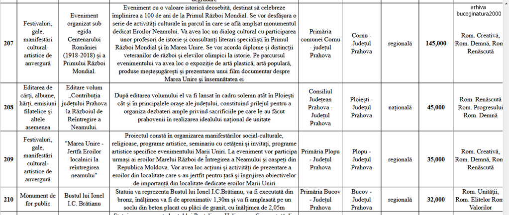 Eveniment Ce proiecte s-au aprobat de Centenar in judetul Prahova Publicat de buceginatura2000 on august 25, 2018 Asa, cateva proiecte mai importante ce vor fi puse in practica pe raza judetului Prahova si sumele alocate: La Cornu Directia Judeteana pentru Cultura Jandarmii Partajează prin WhatsApp(Se deschide într-o fereastră nouă) WhatsApp Trimite unui prieten un email cu o legătură(Se deschide într-o fereastră nouă) Email TweetApreciază Încarc... Similare