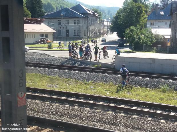 Azuga, week-end. Orice week-end. Vine trenul din Bucuresti si din el coboara… biciclisti dupa biciclisti. In nicio statiune de pe Valea Prahovei nu coboara atat de multi…