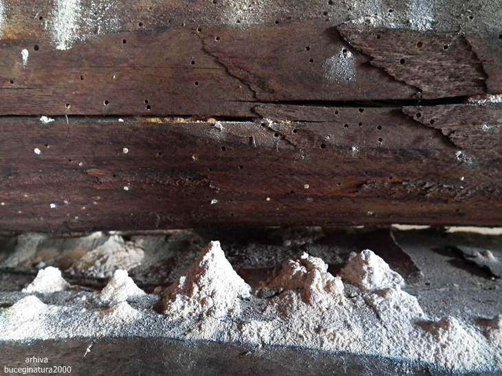 Prin acele gauri mici-mici umbla de colo-colo niste si mai mici devoratori de lemn… ei produc rumegusul acela.
